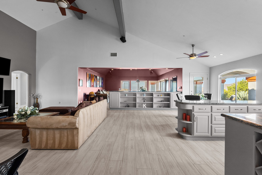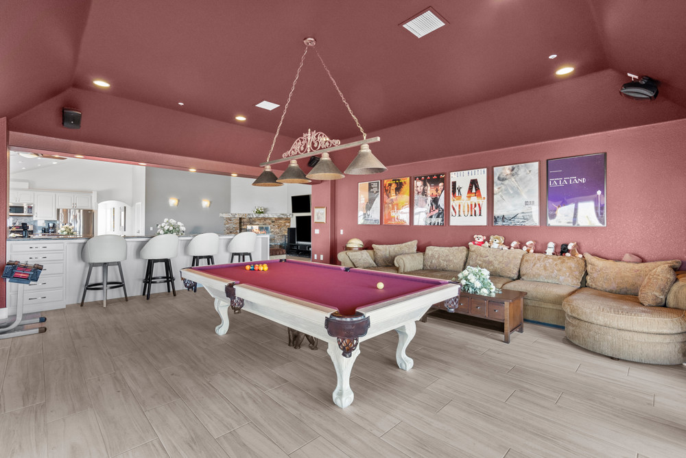 The estate boasts a massive gourmet kitchen, formal dining room, and billiards room. The living room has 22-foot high ceilings and three TVs for “sports book” style viewing. The crown jewel of DVS is the massive 10,000 sf patio area; for epic sunsets, starry nights, relaxing by the firepit, and unmatched outdoor privacy. If you want to go big, DVS is also perfect and available (for additional fees) for weddings, quinceaneras, private parties, filming, and other special events; all including on-site parking for hundreds of vehicles.