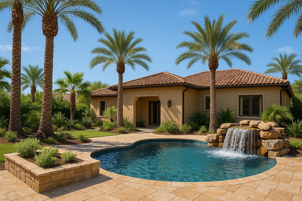 Mediterranean Curb Appeal, Palms, and a Dreamy Backyard